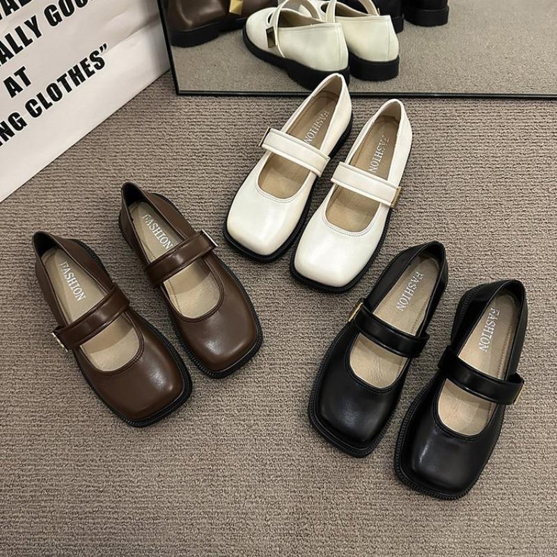 Retro Brown Square Head Mary Jane Shoes Women's New Casual Velvet Light Mouth Single Shoes Women's Flat Bottom