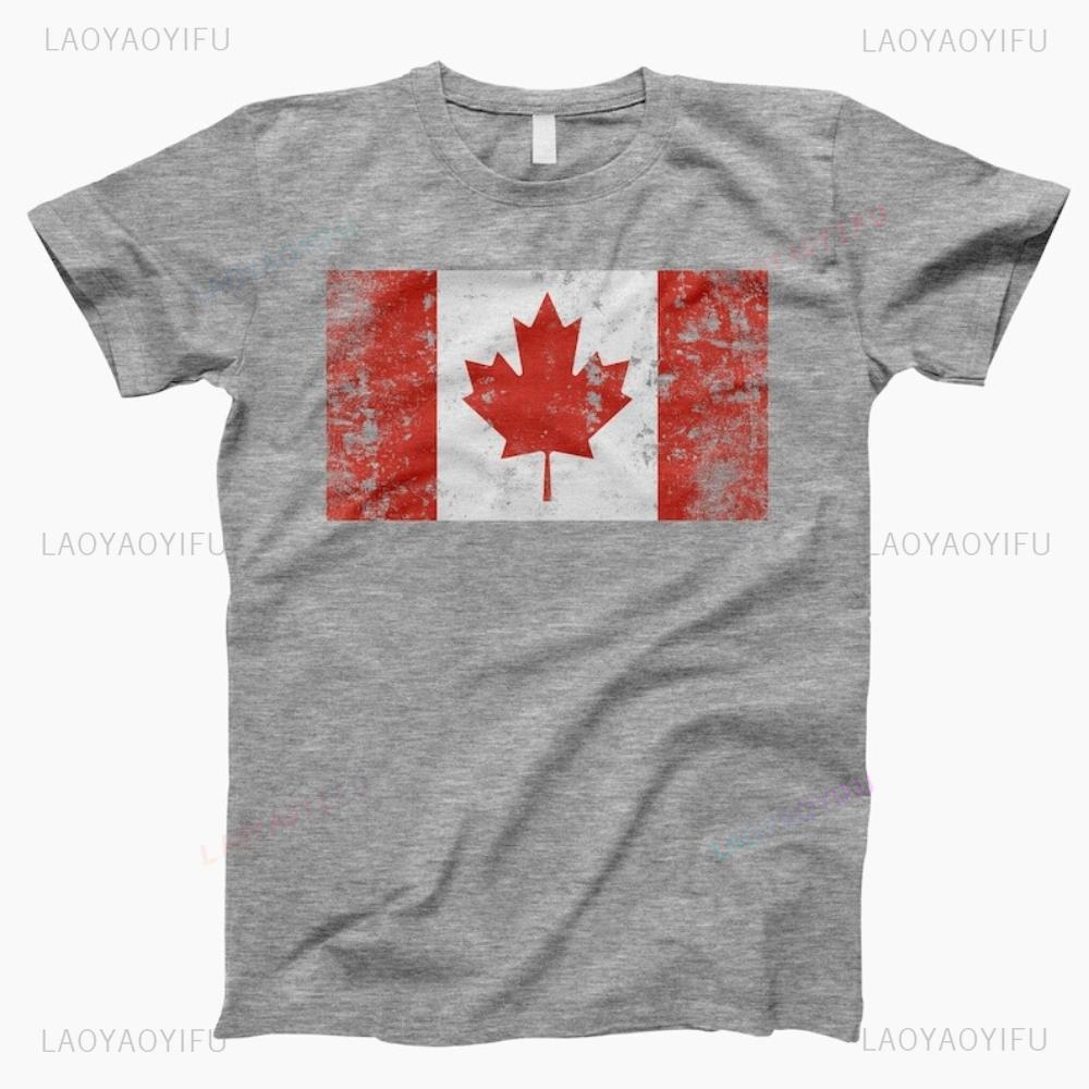 Vintage Distressed Canadian Flag Graphic T Shirts Woman Man Summer High Quality Cotton Tshirt Retro Casual Streetwear Clothes