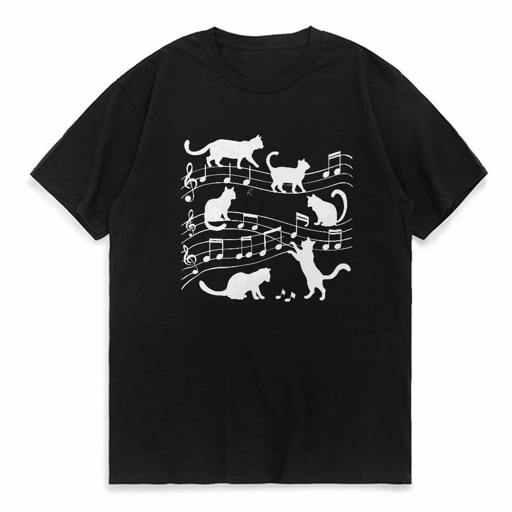 Music Cat Print Crew Neck Tshirt Fashion Casual Short Sleeve Tee Outdoor Summer Breathable Sports Round Neck T Shirt Tshirts