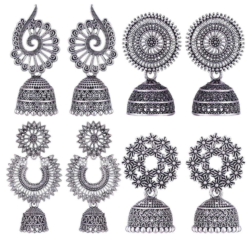 Earrings for Women Fashion Jhumka Oxidised Silver Earrings for Women Combo Chandbali Pearl Chandbali Stylish Jhumkas