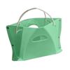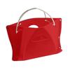 This folding stool offers a sturdy and comfortable design, crafted from durable stretchy plastic with reinforced rivets for enhanced stability. Its ergonomic curved top and bottom provide excellent support, while built-in handle holes make repositioning effortless.