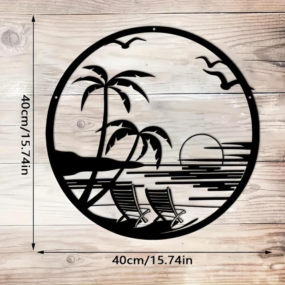 Metal Wall Art Beach Sunset Palm Tree Chair Silhouette Patio Balcony Decor