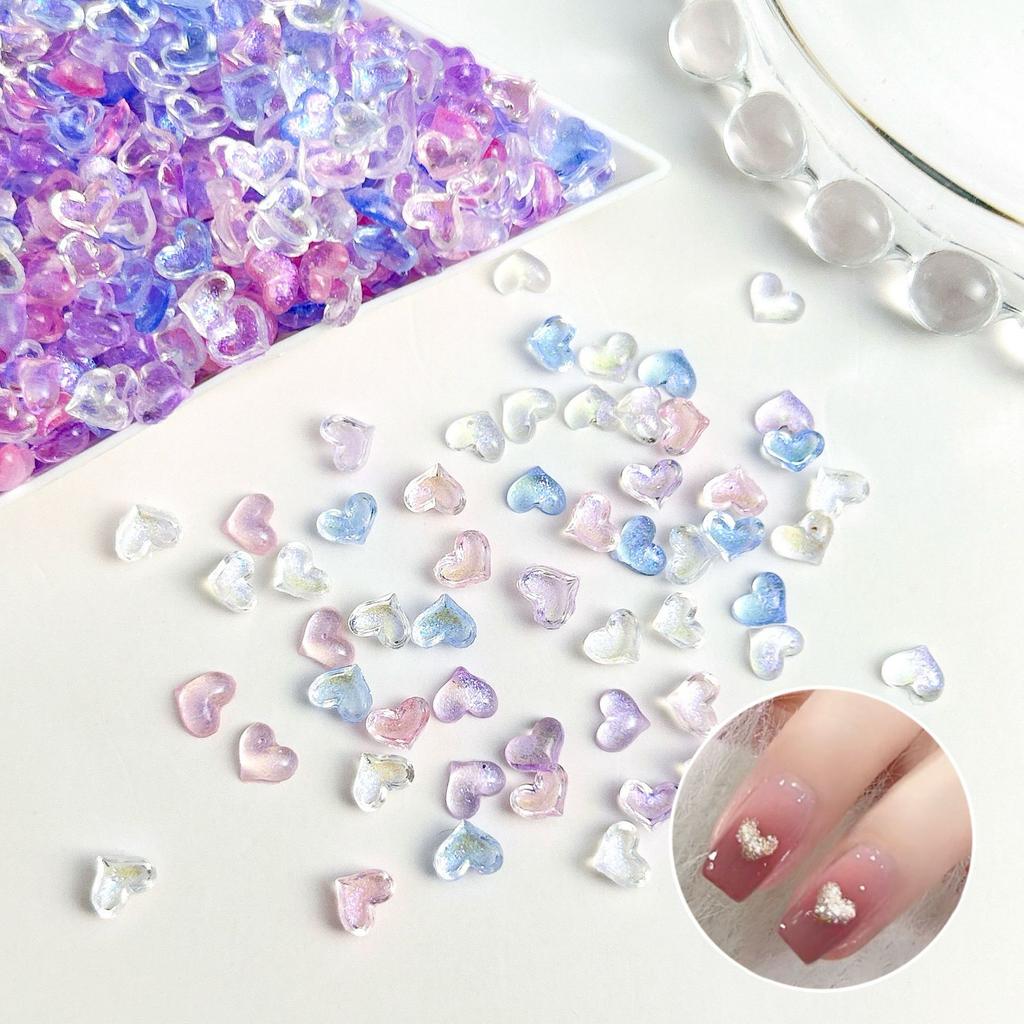 Internet Celebrity Ice Transparent Mini Heart Nail Art Accessories Crystal Peach Heart Flat Bottom Rhinestones 2024 New Wearable Nail Material Kit