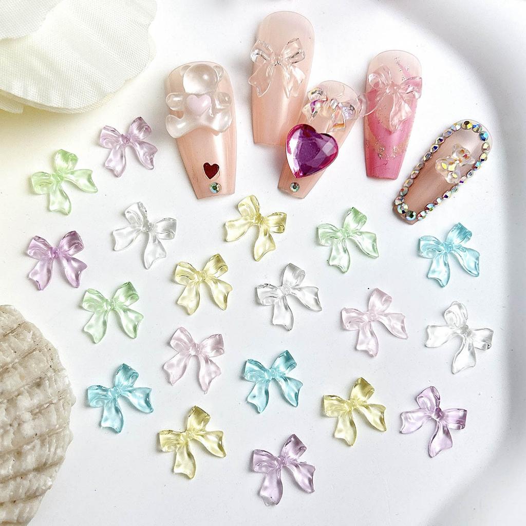 Jelly Color Ice Transparent Bowknot Nail Art Accessories Resin 3D Small Bow Versatile Ins Wearable Nail Decorations
