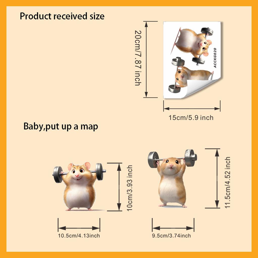 Cartoon Hamster with Dumbbell Wall Stickers, Workout Theme Removable Self-Adhesive for Kids Room & Living Room Decor