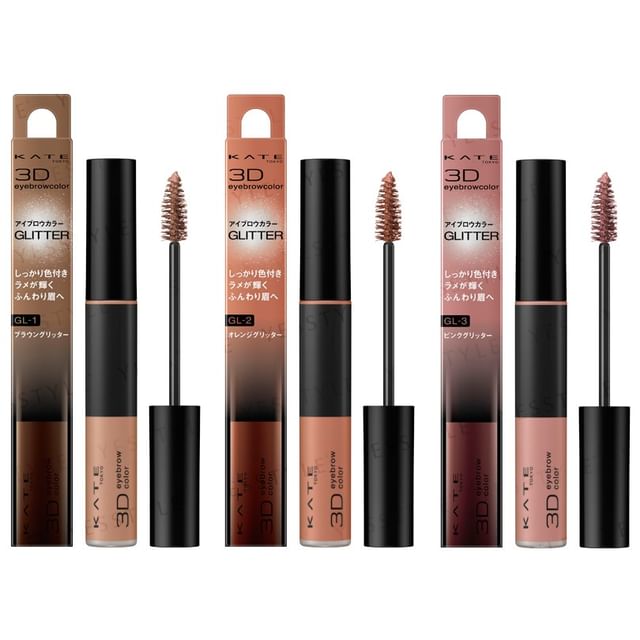 Glitter type eyebrow mascara that gives each eyebrow a deep color yet a soft finish. Contains high adhesion wax.