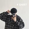 Spring Men's Retro Loose Plaid Hoodie Long Sleeve Shirt - Korean & Hong Kong Style