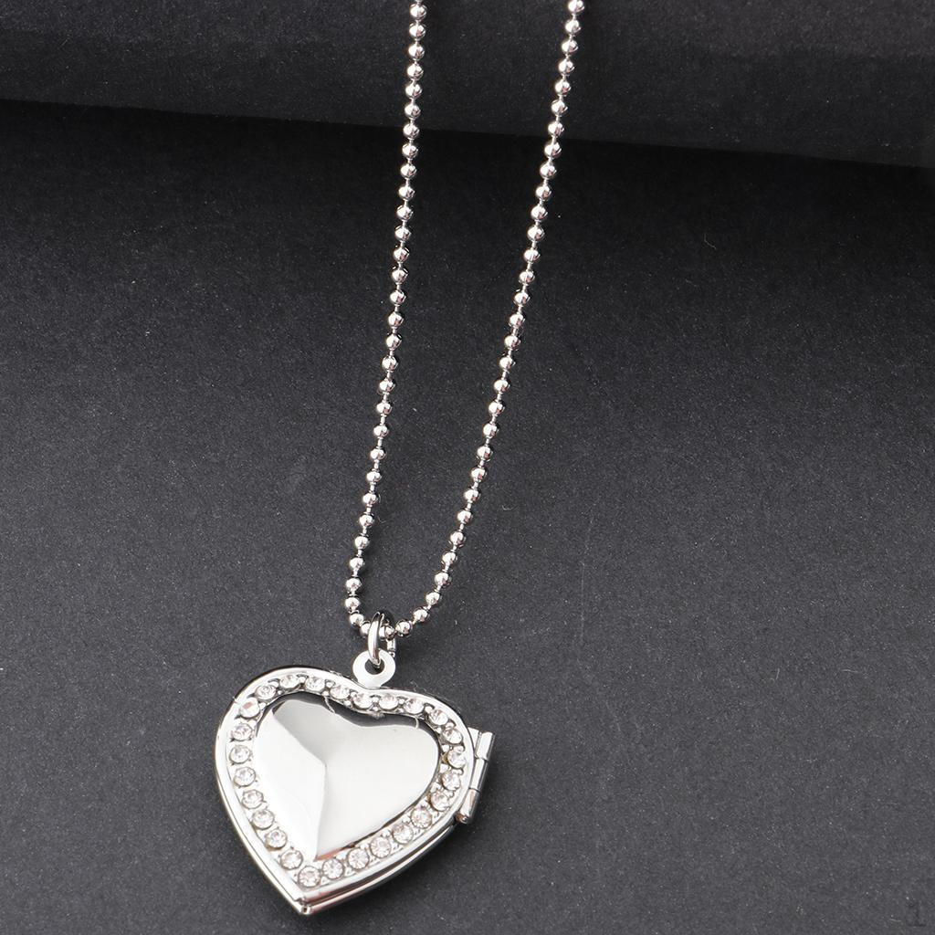 Copper Little Heart Crystal Photo Picture Locket Charms Pendant Chain Necklace