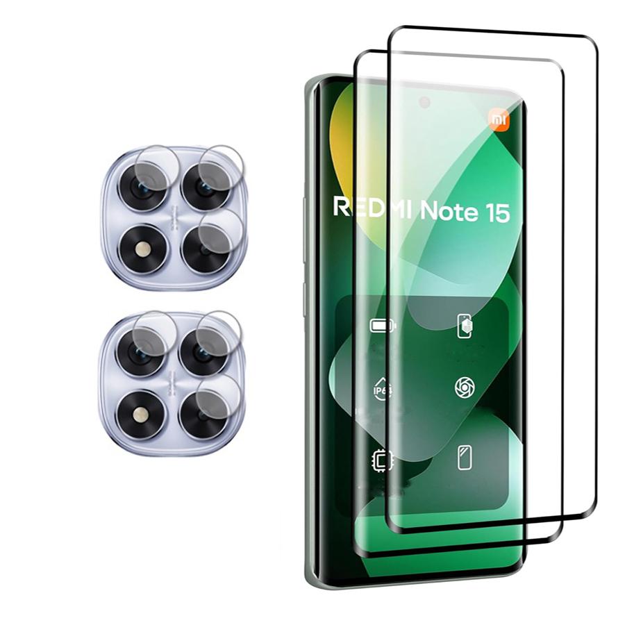 4Pcs 2+2 Pack 3D Curved Full Glue Tempered Glass Screen Protector+ Soft Camera Lens Film for Redmi Note 15/ Note 15 5G 15 Pro 4G/5G Note15 Pro+ Plus