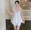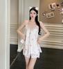 New Pajamas Women's Pure Desire Wind Suspender Shorts Loungewear Printed Pajamas Set Lace