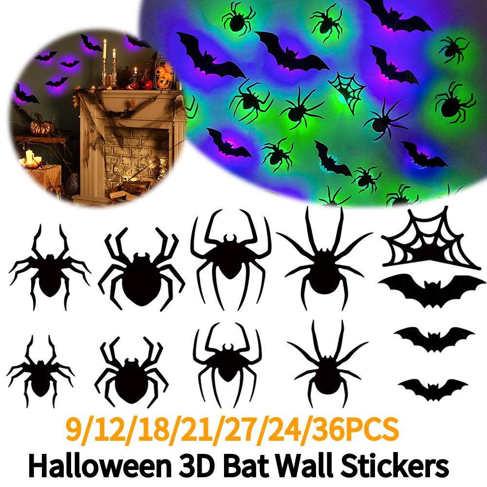 9-36PCS Lighted Wall Stickers 3D Wall Stickers Halloween 3D Bat Wall Stickers for Halloween Party Indoor Outdoor Decoration