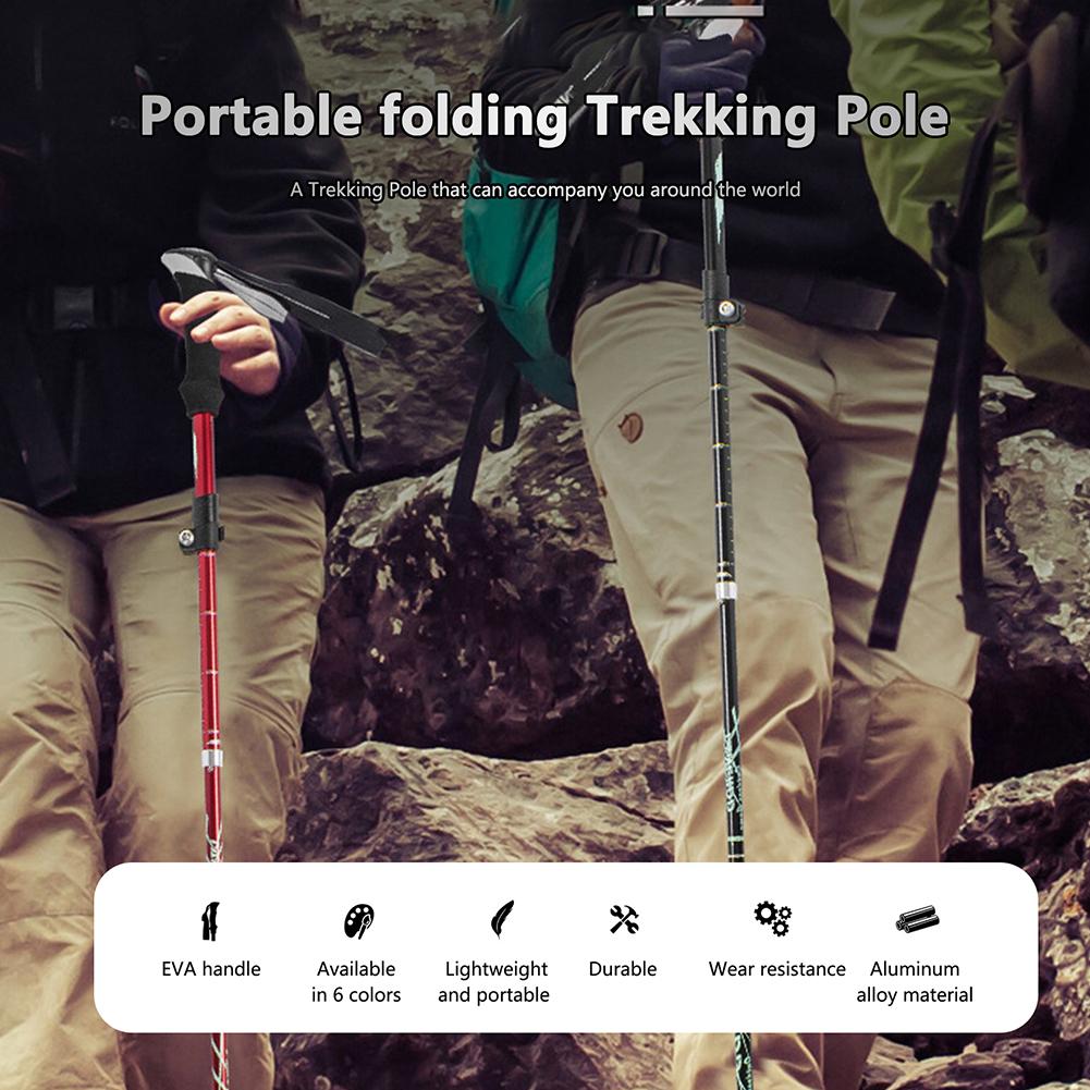 Collapsible Trekking Pole Walking Stick 5 Sections Ultra-light Telescopic Aluminum Alloy Outdoor Hiking Stick