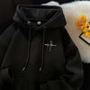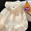 Men's Gray Hooded Sweatshirt: Thick, Velvet-Lined, Trendy American Style for Autumn/Winter