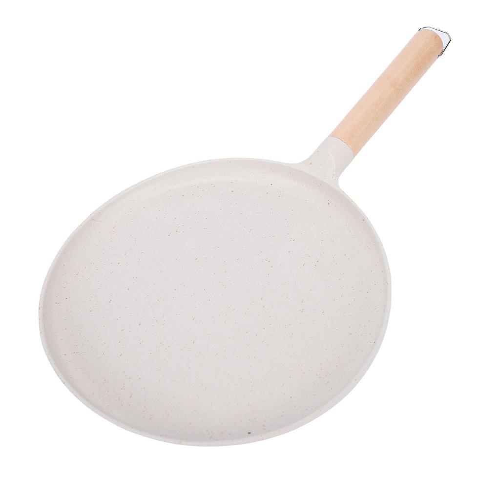 Pancake Griddle Anti Stick Coated Aluminum Alloy Flat Skillet with Wood Handle for Tortilla Roti Indian Pancake