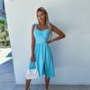 Fashion Women's Lace Up Print Sexy Tube Top Sling Waist Hem Slit Dress