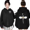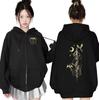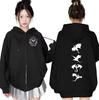 Unisex European Harajuku Style Printed Hooded Zipper Sweatshirt Cardigan