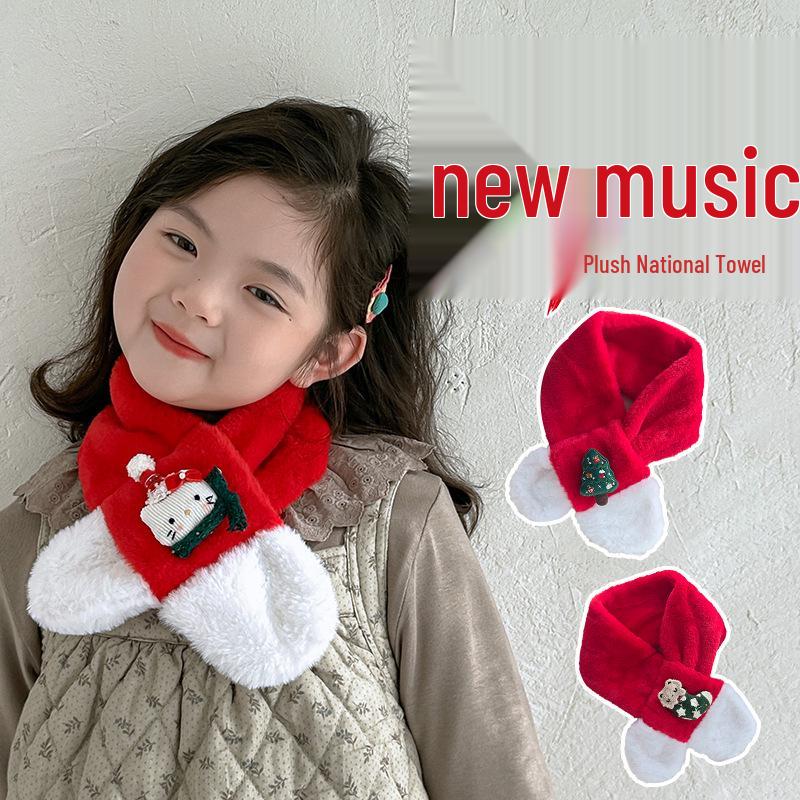 Kids' Red Knit Scarf: Winter Plush Neck Warmer