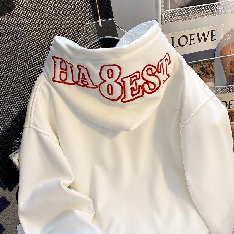 Men's American Retro Trendy Loose Hooded Jacket – Versatile Heavyweight Simple Hoodie