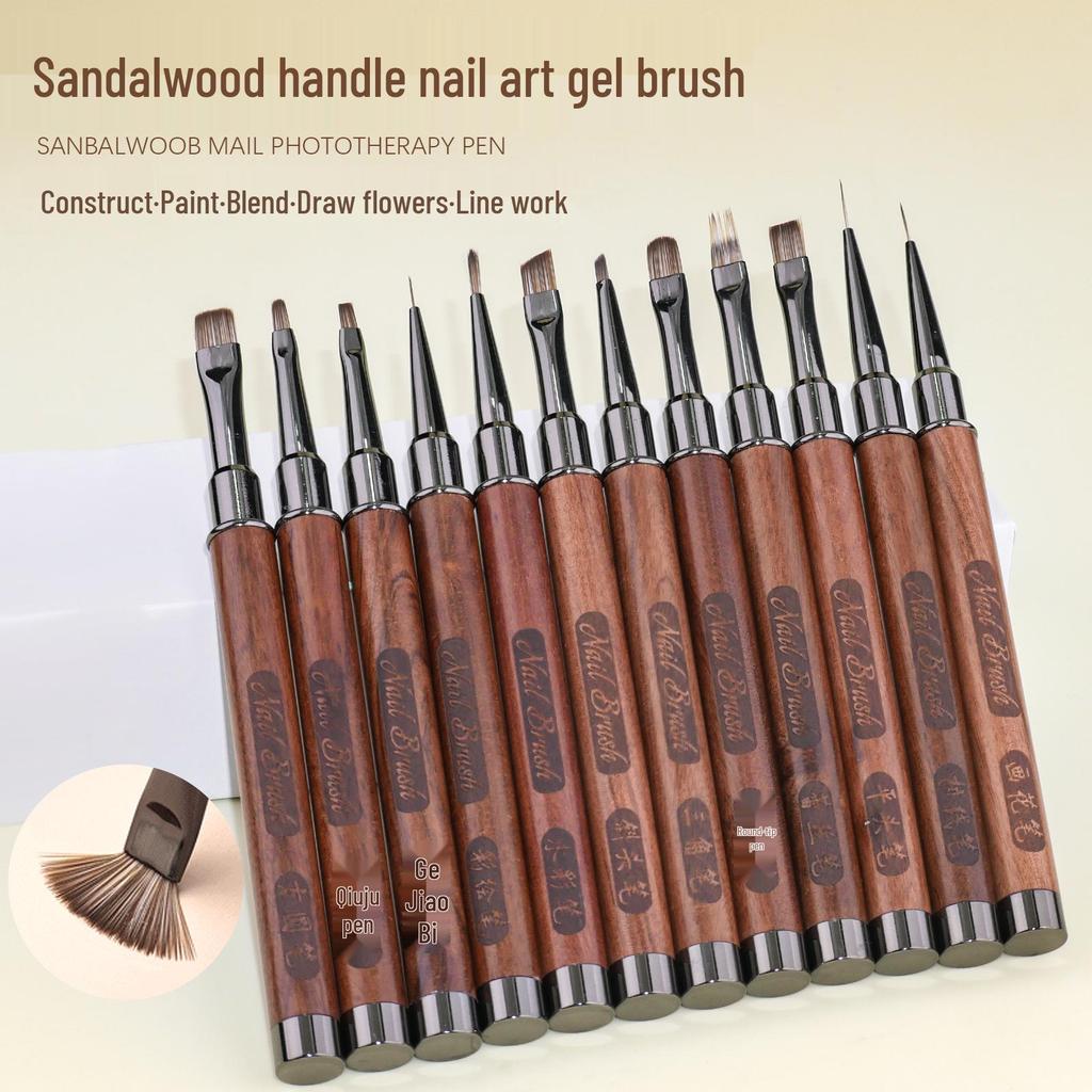 Sandalwood Nail Art Gel Pen Set: Round & Flat Tips for Painting, Drawing, and French Designs