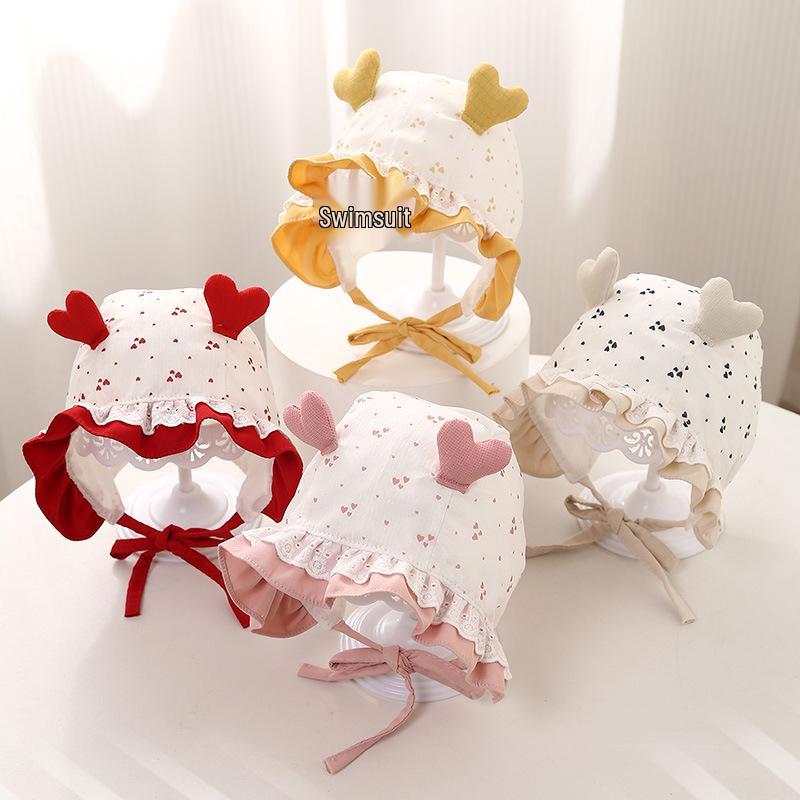 Floral Print Baby Girl Hat with Lace Trim and Ear Protection for Spring/Summer