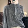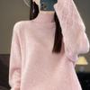 Women's Clothing Solid Color Pullover Long Sleeve Sweater Knitted Elegant Casual Autumn Winter Half High Collar Office Lady Tops