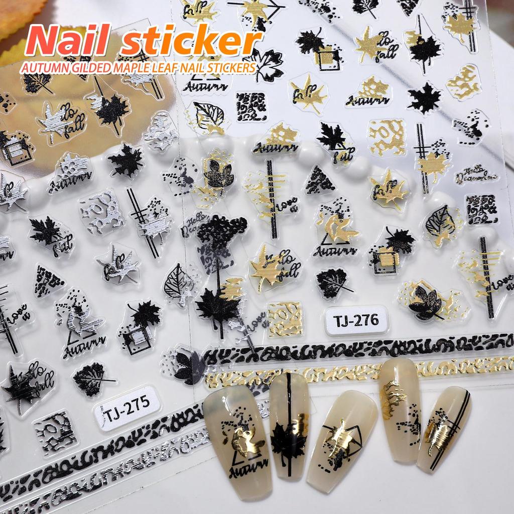 Gold & Silver Maple Leaf Nail Stickers - Light Luxury Thanksgiving Nail Art