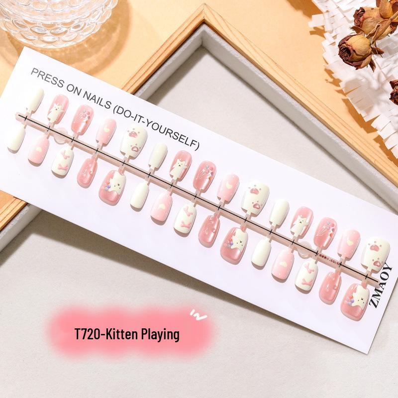 Kitten On Ladder: 3D Cat Eye Press-On Nail Tips - 30 Pcs, Cute & Soft Style