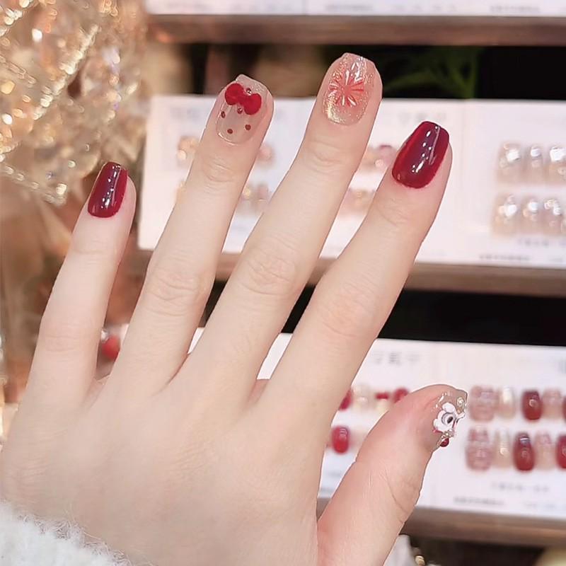 2026 Autumn/Winter Red Cherry Cat Eye Lion Dance Wearable Armor - Elegant Skin-Whitening Handmade Nail Art