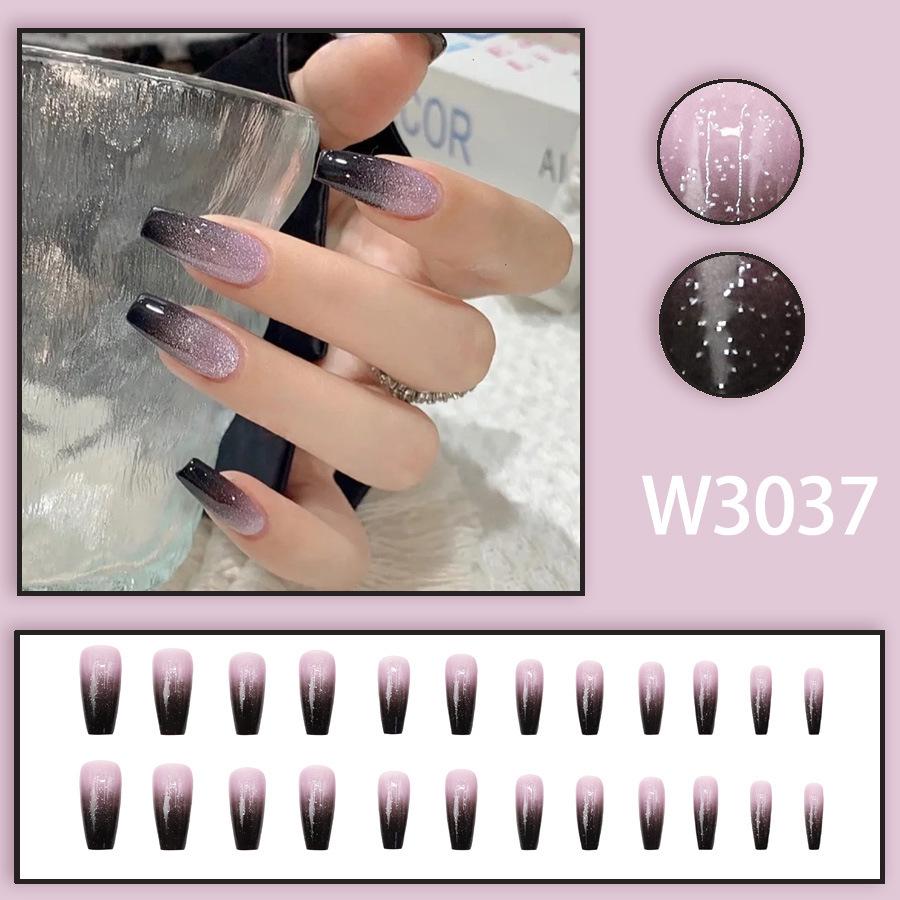 Galaxy Starlight Gradient Black Glitter Ballet Nails In Phantom Purple, 24-Piece Set
