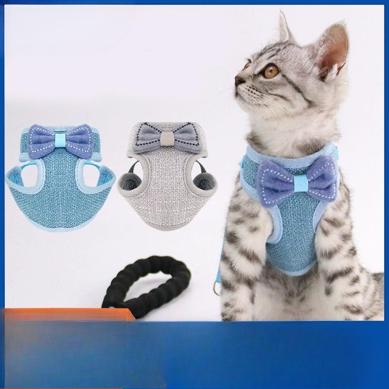 Belt-style Bow-shaped Cat Leash To Prevent Escape, Adjustable Cat Walking Rope, Chest-back Traction Rope