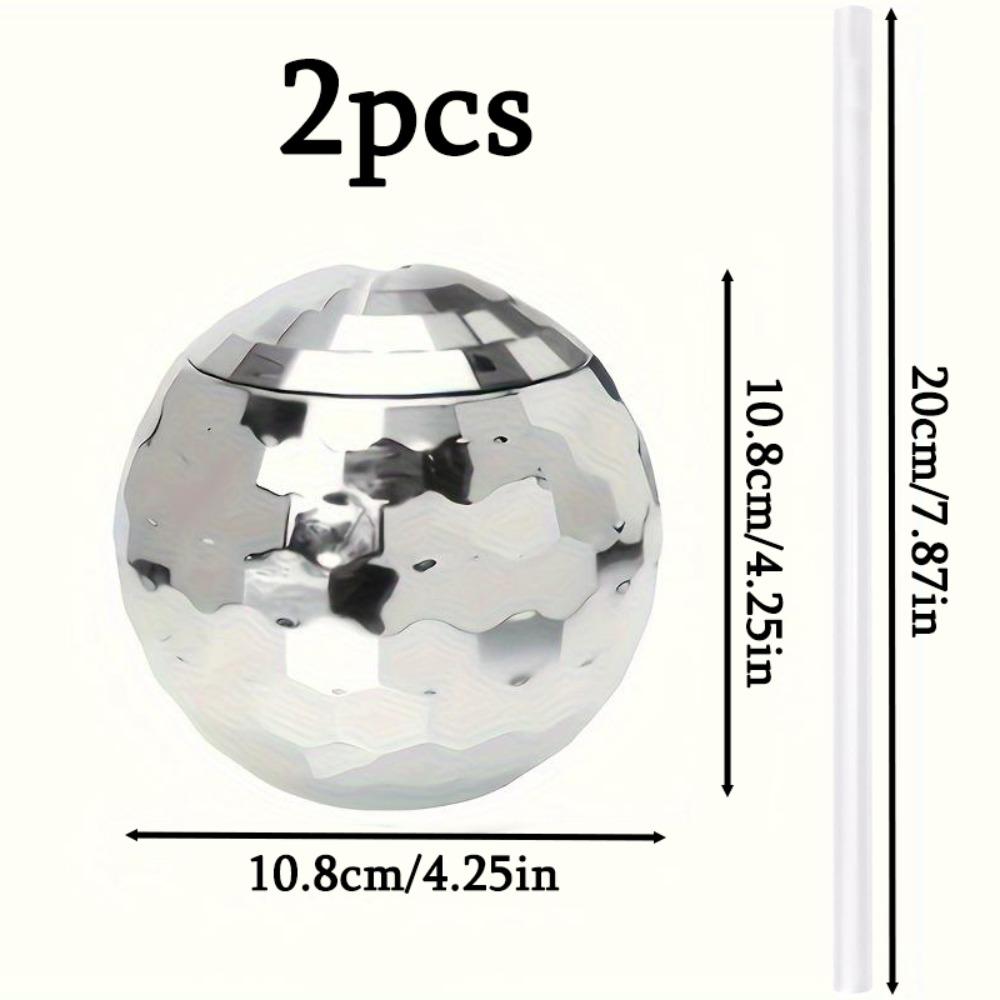 2pcs Silvery Disco Ball Cups 20oz Party Cups with Lid and Flash Ball Cocktail Cup Plastic Cups Tumbler with Lids and Straws Disco Ball Cups