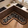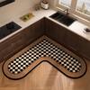 L-shaped Carpet for Kitchen Absorbent Non-slip Floor Mat Minimalist Retro Style Home Decoration Rug Oil Absorption Wipeable