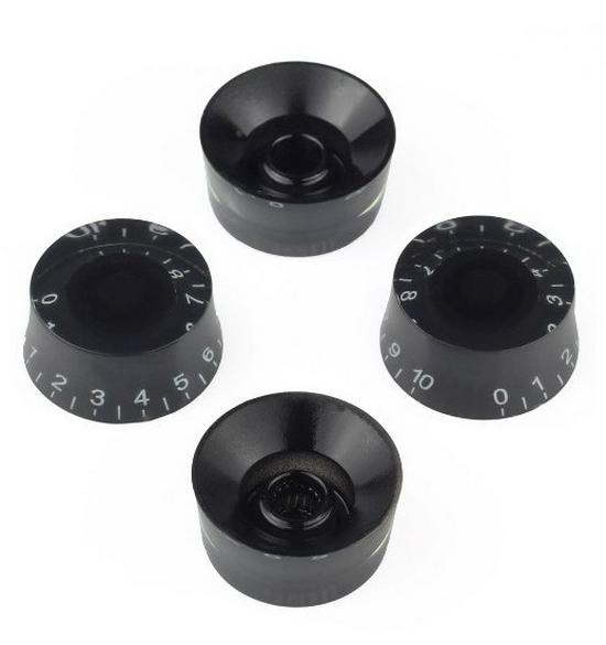 Black LP Electric Guitar Knob Caps: Volume, Tone, Straight Body, with White Lettering