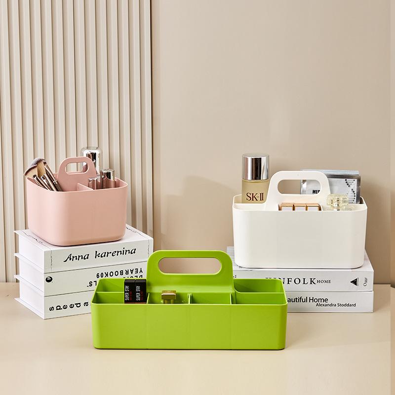 4/8Grids Portable Office Stationery Organizer Plastic with Handle Desk Detachable Pen Holder Divider Makeup Brush Storage Box