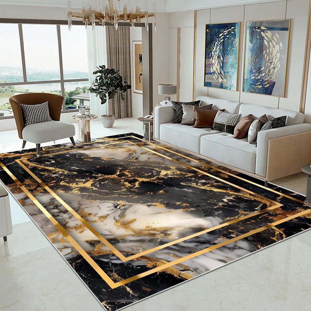 Luxury Marble Large Rugs for Living Room Decor Sofa Black Gold Carpet Decoration Home Coffee Tables Mat Non-slip Bedroom Carpets