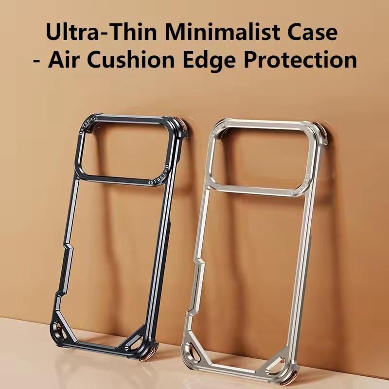 Metal Frameless Phone Case for iPhone 17Air 17 16 15 Pro Max 17Pro 16Pro 15Pro Ultra-thin Magsafe Phone Case Air Cushion Shockproof