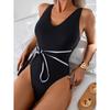 Bow Color Block Sports One Piece Swimwear V Neck Female Bathing Suits Women'S Triangle Bikini Monokini Swimsuit Beachwear