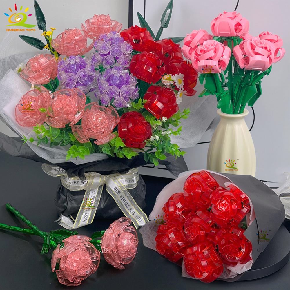 MOC Rose Flower Model Building Blocks DIY Eternal Bouquet Bricks Kits Toy For Children Girl Home Decoration Xmas Gift