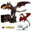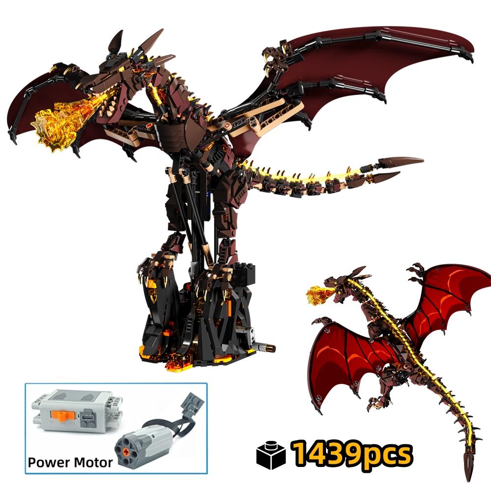 1439PCS Mechanical Fire Dragon Blocks Mythical Creatures Series Light Connectable Animal Model Creative 3D Desk Decor Gift