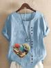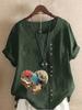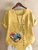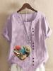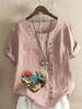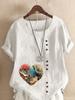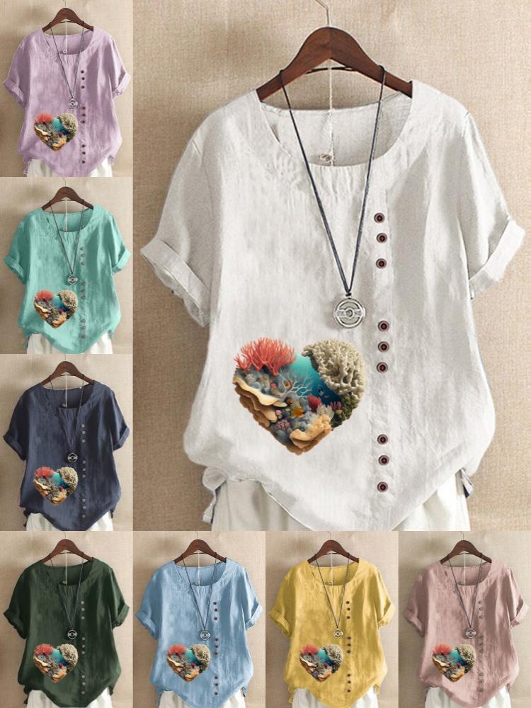Women's Fashion Coral Heart-shaped Print Shot Sleeve T-shirt Loose Cotton Shirt Casual Loose Summer Blouse Tops Plus Size