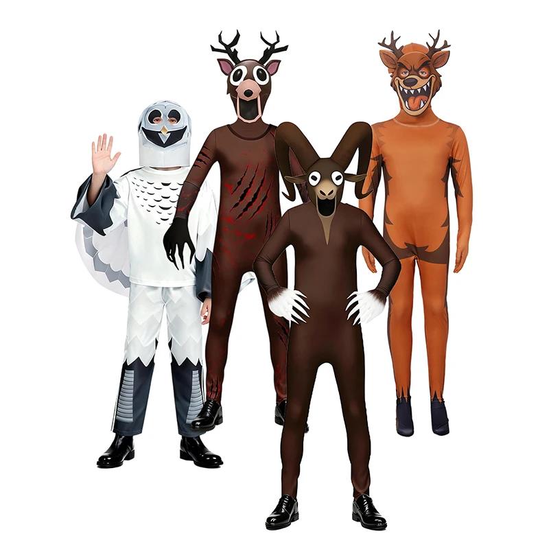 Horror Game 99 Night In The Forest Children Cosplay Jumpsuit Headgear for Men and Women Goat Deer Owl Costume Toy Birthday Gift