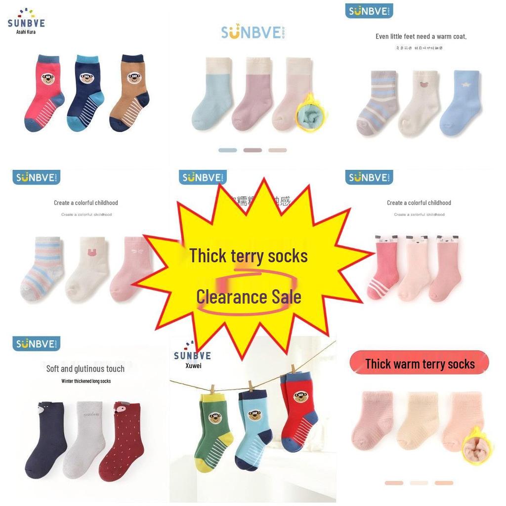Children's Autumn/Winter Terry Cloth Mid-Calf Socks – Korean Style, Thick Cotton for Boys and Girls.