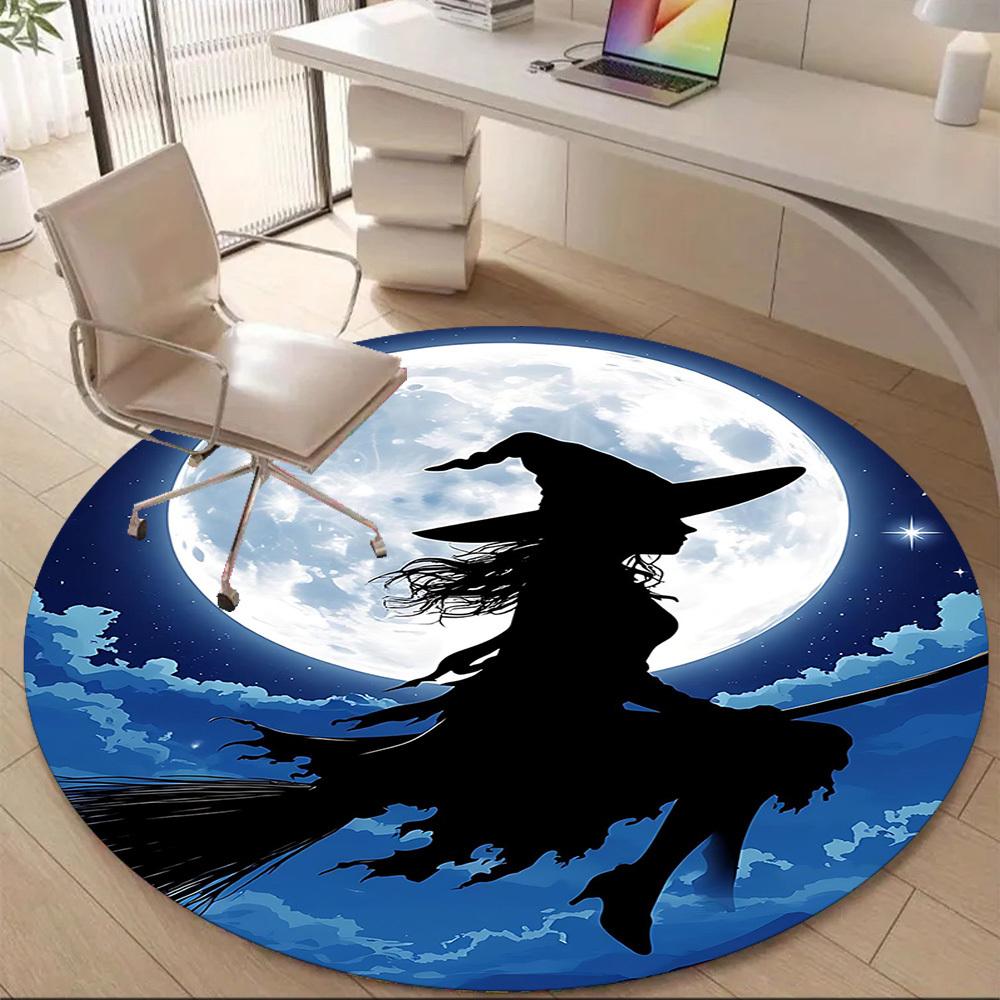 1PCMoon Witch Office Round Area Rug, Mat Suitable For Office, Under Office Chairs Bedroom Living Room Home Decor, Room Deco