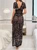 Summer New Female Sexy Leopard Print Printed Lace Splicing Suspender Split Fork Sex Pajamas Female