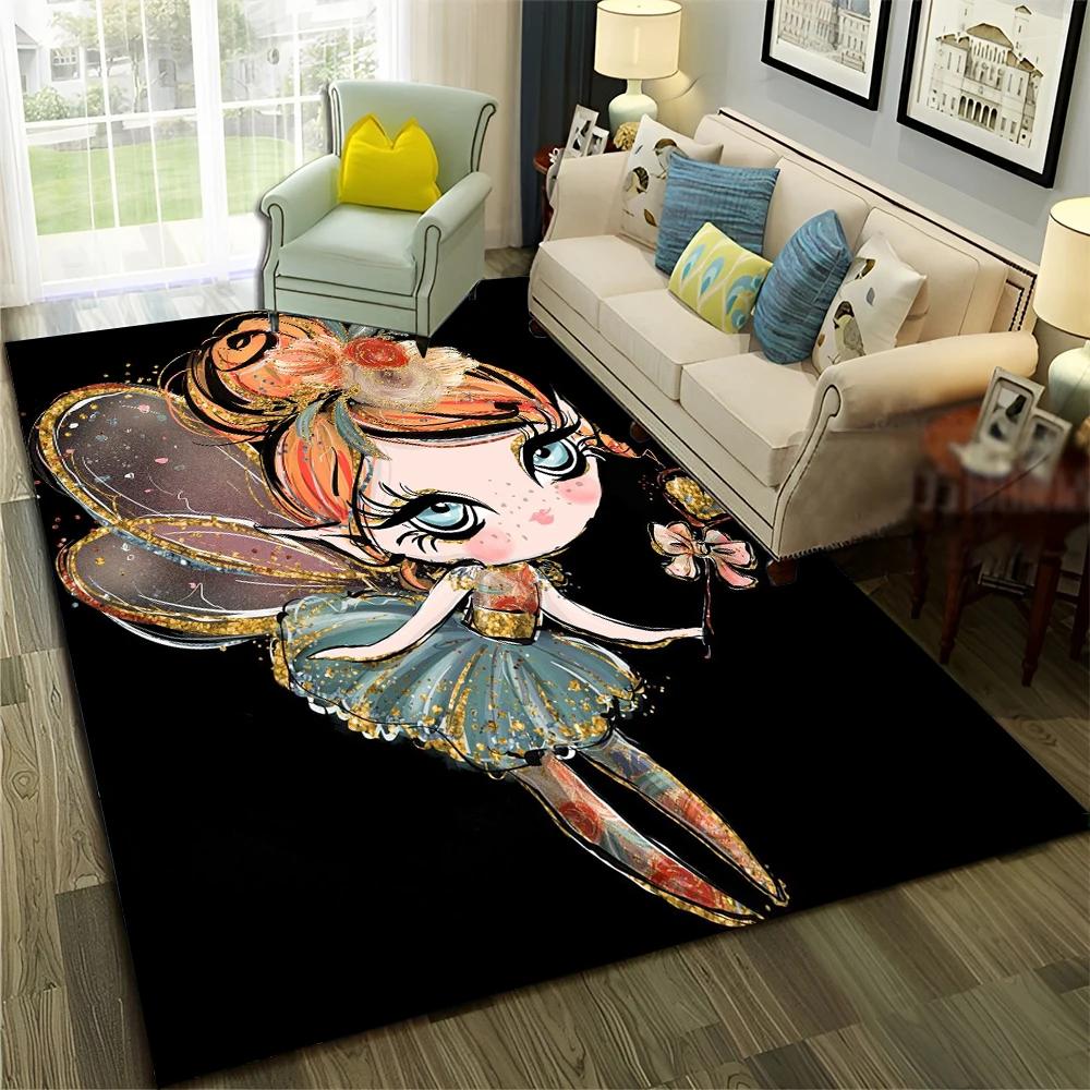 3D Cute Ballet Girl Ballerina Fairy Cartoon Carpet Rug for Home Living Room Bedroom Sofa Doormat Decor,Child Non-slip Floor Mat