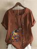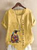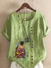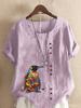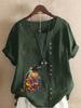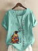 Women's Fashion Penguin Floral Print Round Neck Short Sleeve T-shirt Casual Cotton Linen Graphic Shirt Leisure Loose Summer Blouse Tops