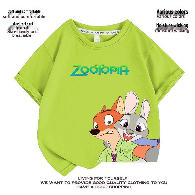 This stylish summer top features a fun Zootopia cartoon design, perfect for both boys and girls. Made from pure cotton, the short sleeve t-shirt ensures comfort and breathability during warm weather. Ideal for casual outings or playtime, this vibrant and playful shirt is a must-have addition to any child's wardrobe, combining comfort and style effortlessly.