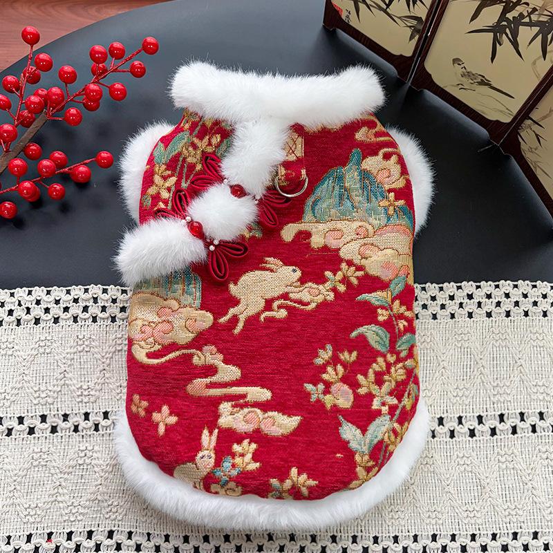 Winter and Autumn Dog and Cat New Year Formal Wear Thick and Warm Cotton Coats for Pets, Pet Clothing Accessories
