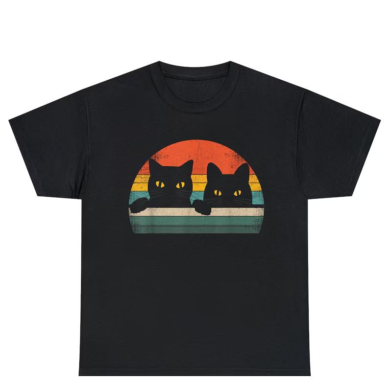 Black Cat Vintage Retro TShirt Retro Vintage Black Cats 80s Style Cat Owner Funny Cat Face 70s Black Cat Halloween Shirts