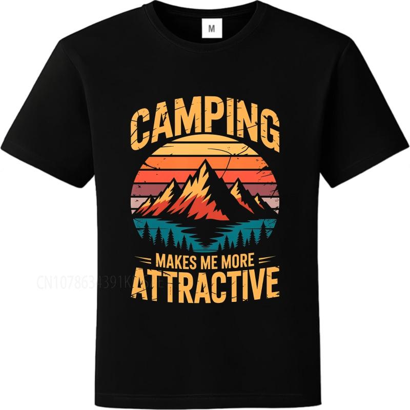 Unisex Summer Unisex T Shirt Camping Makes Me More Attractive Mountain Sunset Design Short Sleeve Adult Oneck Tshirt